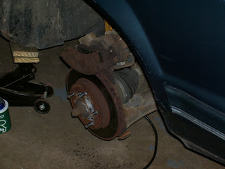 So I unhook the caliper, and popped the rotor off. Put a new caliper on, and rotor, put the pads back in, and was almost done.
